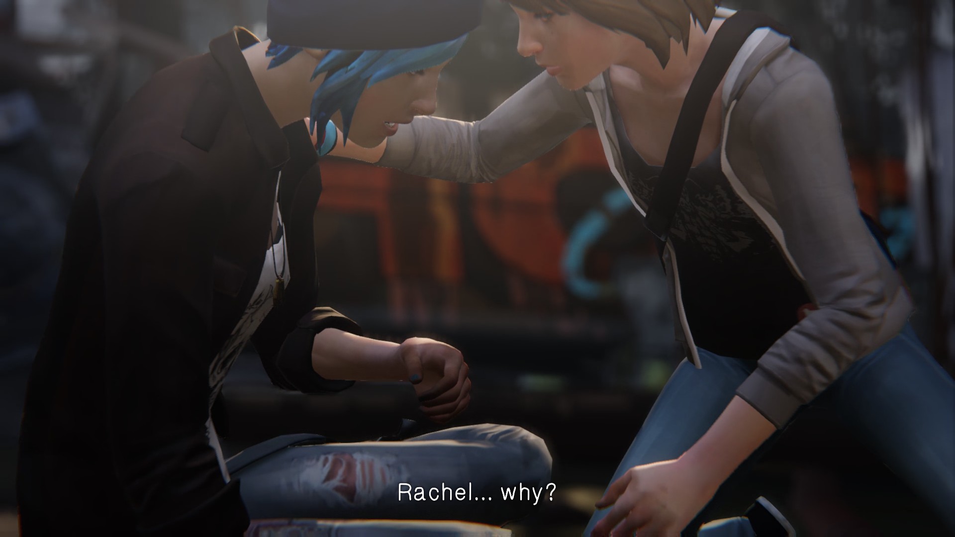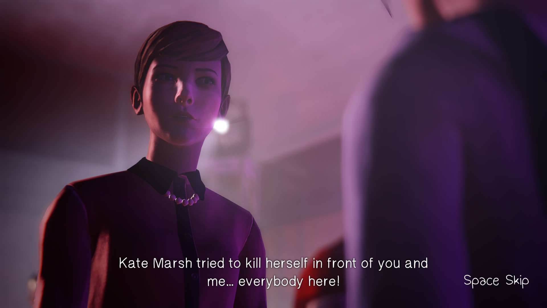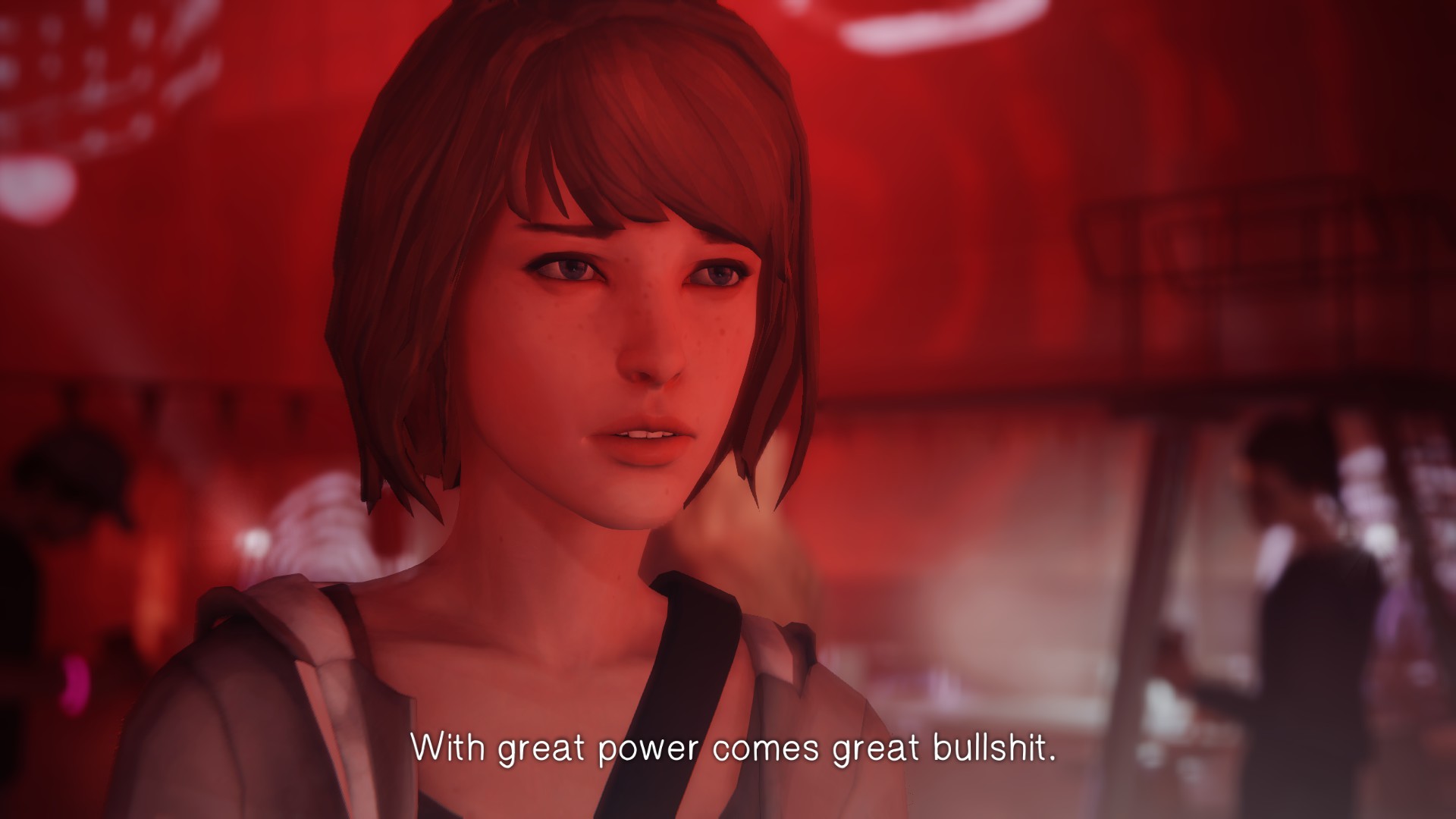 Seriously, is that all that you are good for on this planet? Saving one person’s life so that you may fail to save scores of others? At this point in the game, the full extent of your horrendous failure is hardly realized. Here you sit calmly with your little alt-rock background music and handheld camera montages while the world burns around you, as half-proven suspicions fall flat and totally-not-obvious clues are shoved in your face. And what is your meager saving grace as society crumbles around you? What is the feeble mantra you keep repeating to convince yourself that you are not a monster? I saved Kate… Congratulations, Super Max.