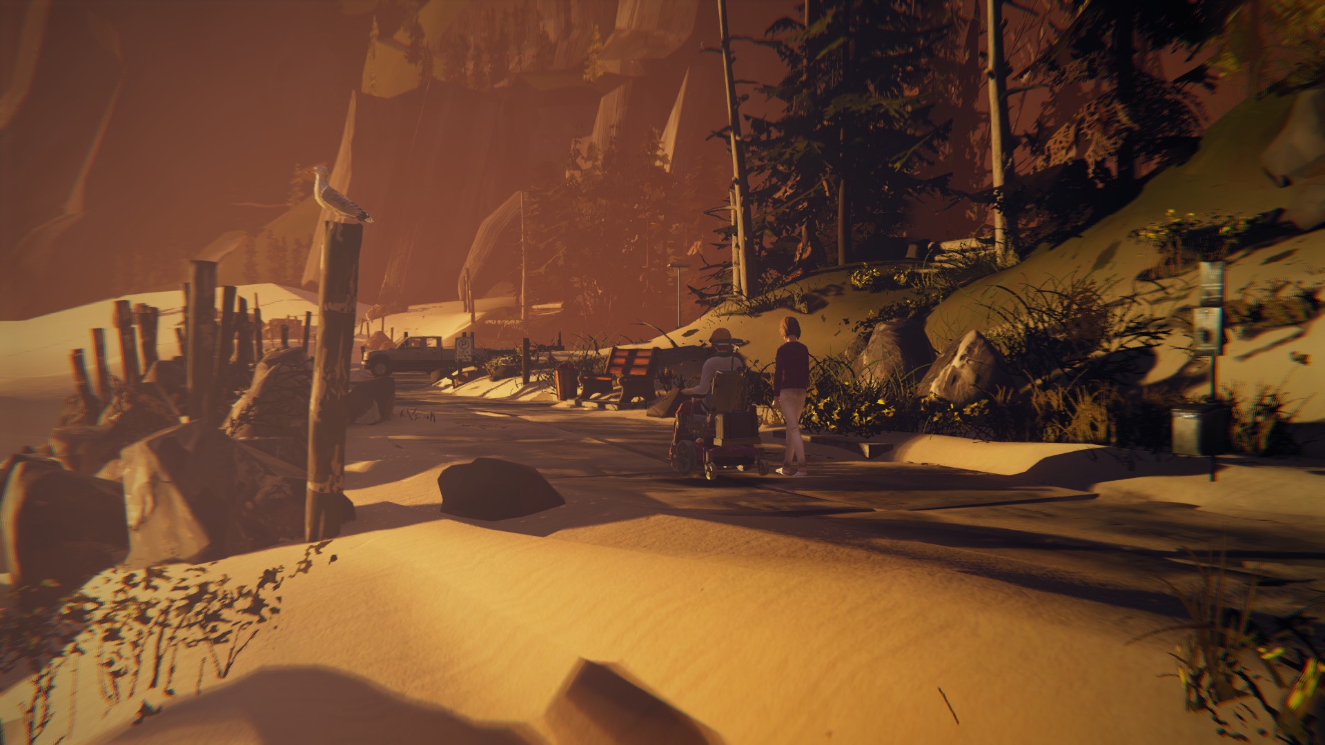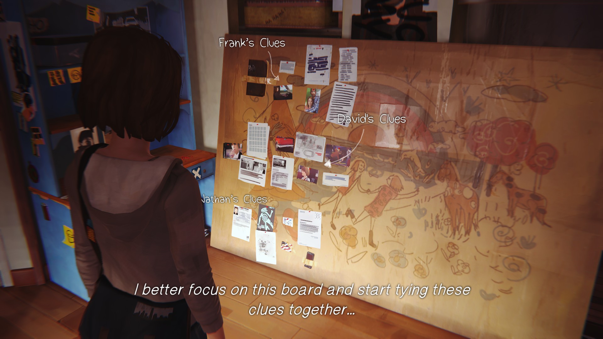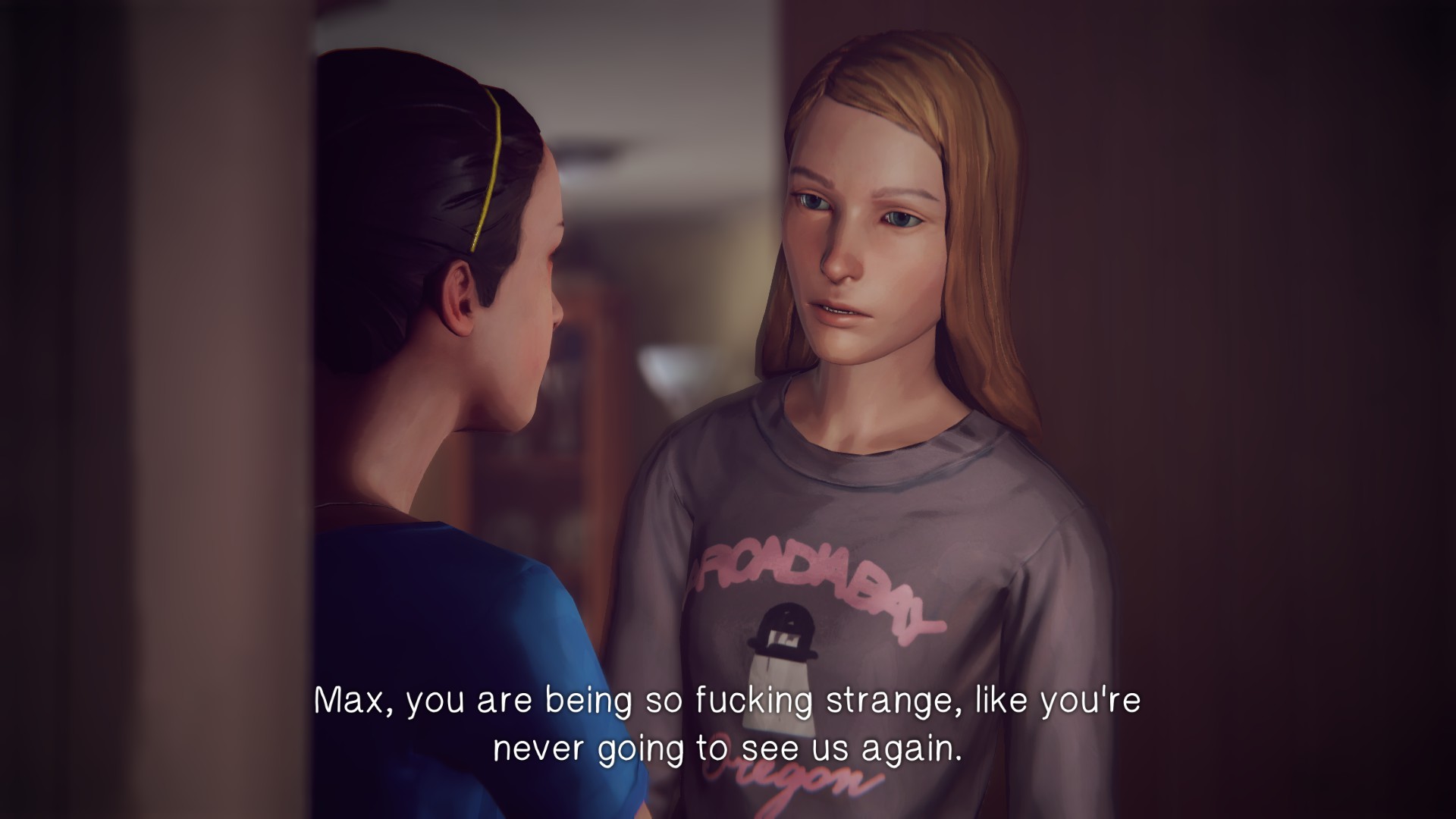 Seriously, is that all that you are good for on this planet? Saving one person’s life so that you may fail to save scores of others? At this point in the game, the full extent of your horrendous failure is hardly realized. Here you sit calmly with your little alt-rock background music and handheld camera montages while the world burns around you, as half-proven suspicions fall flat and totally-not-obvious clues are shoved in your face. And what is your meager saving grace as society crumbles around you? What is the feeble mantra you keep repeating to convince yourself that you are not a monster? I saved Kate… Congratulations, Super Max.
