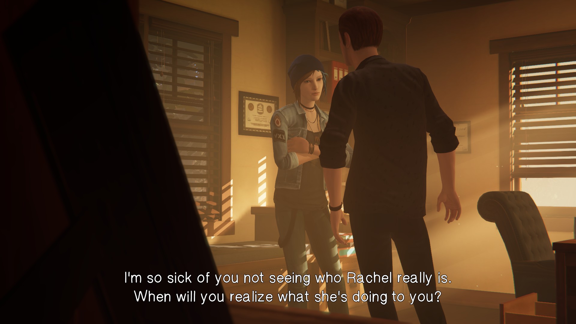 In Sera’s defense, Chloe does drugs all the time, albeit just marijuana, not whatever Sera buzzed out on that was worthy of a social services call. In the end, Chloe is the only person Rachel can rely on to be truthful, and I made sure that was the case throughout the entire game. You are strongly incentivized to veer from this path for very seemly altruistic reasons. I am a strong advocate of always knowing and acknowledging the truth. Chloe has secrets of her own, but for good reason.